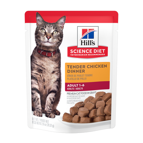Hill's Science Diet Adult Sensitive Stomach & Skin Chicken & Vegetable Entrée canned cat food provides nutrition for optimal digestive & skin health.