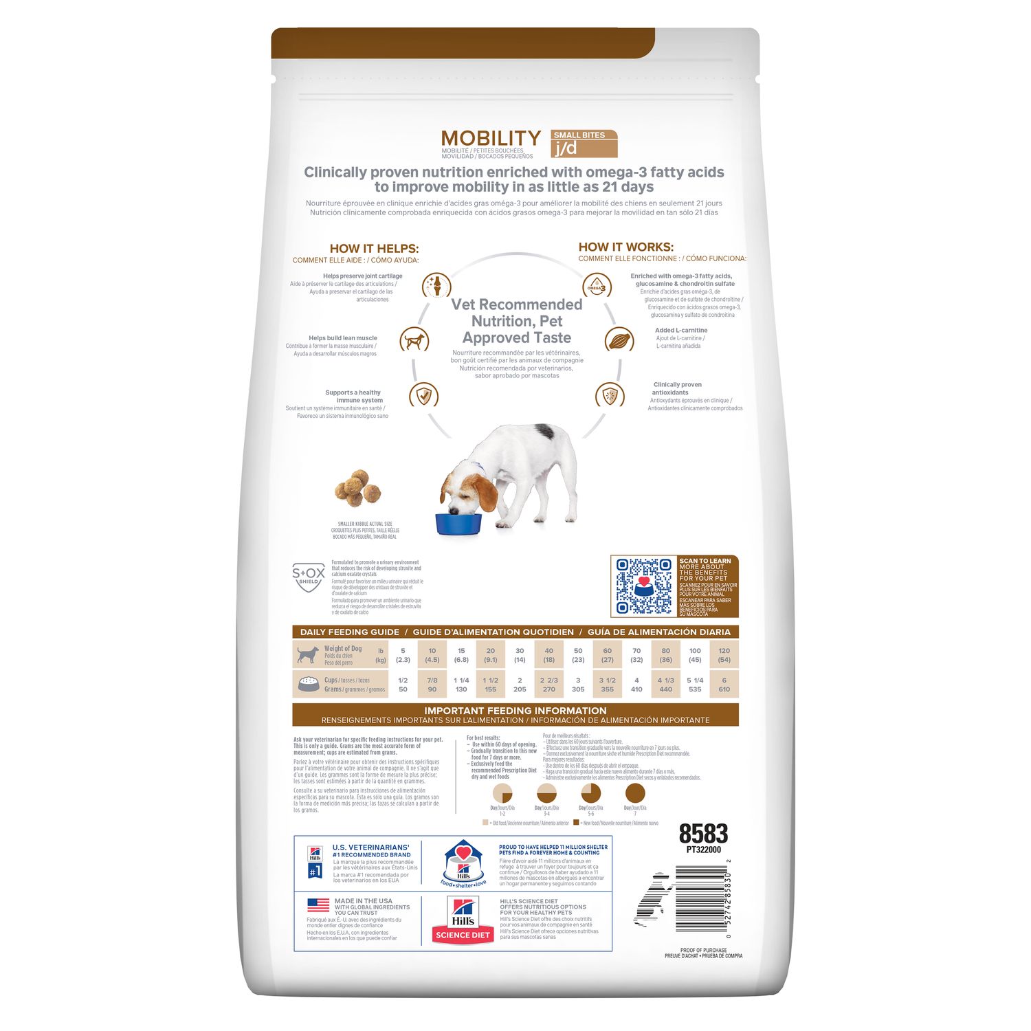 Hill's Prescription Diet j/d Small Bites helps your dog walk, run and jump more easily in as little as 21 days. Hill's Prescription Diet j/d Small Bites Dry Dog Food is a complete and balanced food that provides all the nutrition your dog needs.